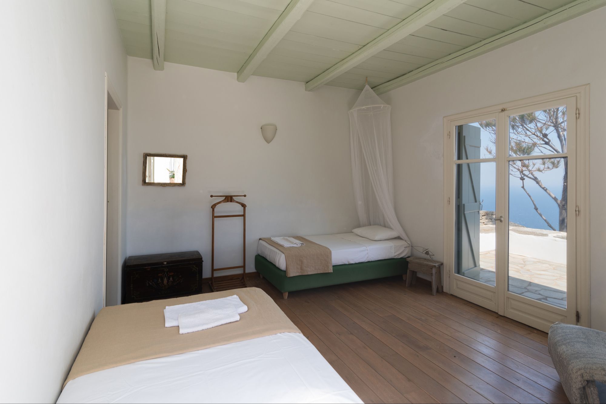 Imagine waking up without an alarm, just the steady sound of waves rolling in, the kind of sound that settles your whole system before you even get out of bed. Imagine opening your eyes to sunlight reflecting off the Aegean Sea, filling your room with warm, natural light instead of blue screens and notifications. You step outside and feel the soft morning air on your skin. You take a sip of coffee or tea while looking at the water, no tasks, no rushing, no one asking you for anything. Your only “appointment” is a slow, grounding morning stretch that actually feels good in your body, not another thing on your to-do list.