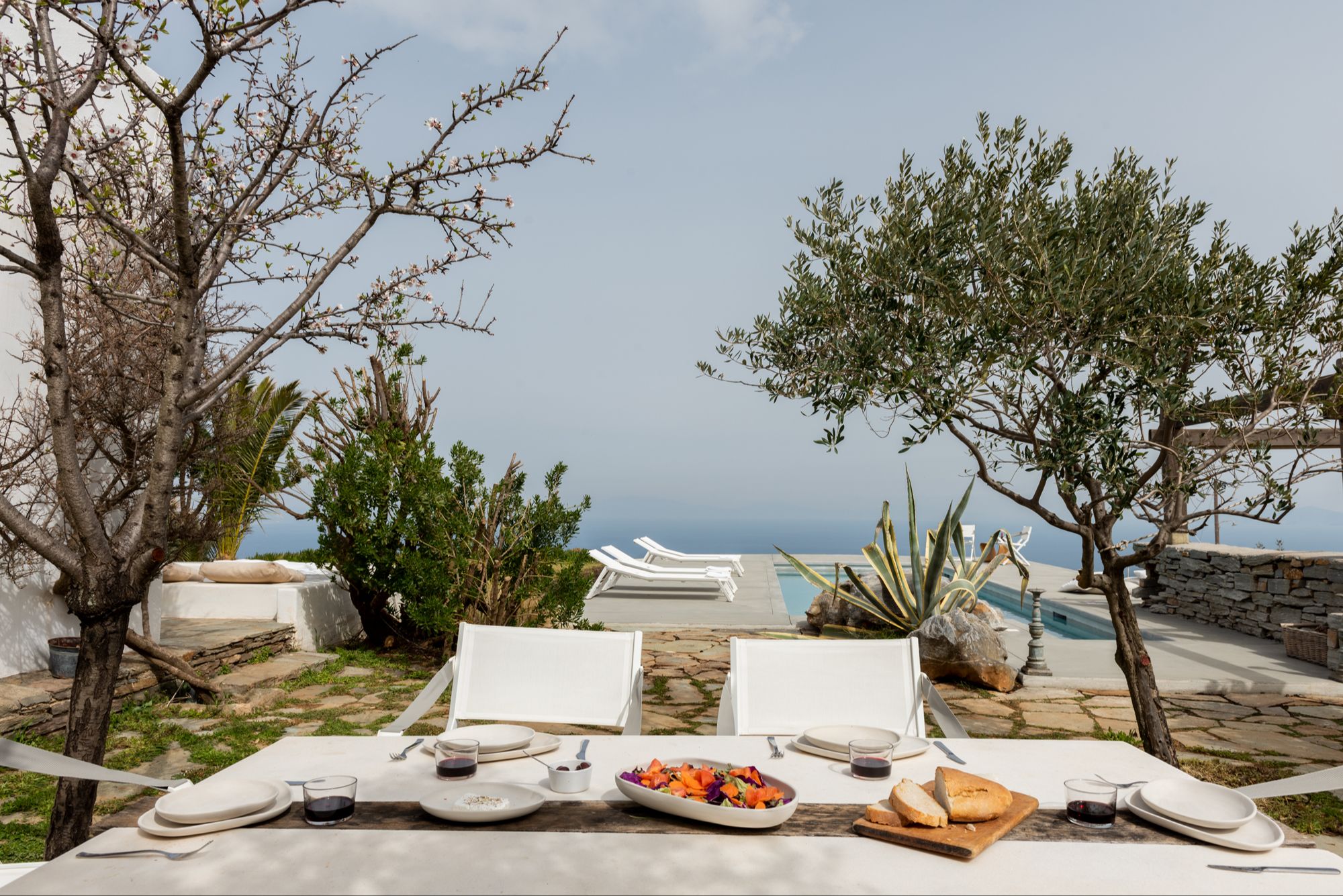 Kea Island is special because it offers an authentic, peaceful escape just an hour from Athens, featuring lush greenery, ancient ruins and a well-preserved network of historic hiking trails. It remains relatively untouched by mass tourism, providing quiet beaches, charming traditional villages with unique tile roofs, and a slower pace of life for those seeking quiet beauty and Greek hospitality.  ​Our luxury villa is a tranquil oasis located on the top of the mountain with incredible views of the sea and the famous Kea Monastery which is walking distance. It's truly the most magical space to slow down from the hustle of life and recharge.Â