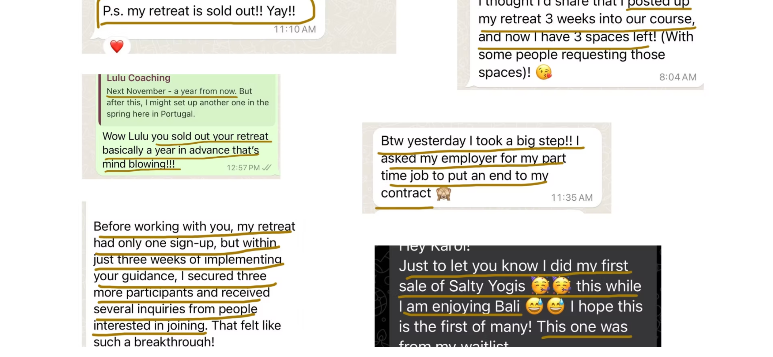 That’s exactly how I went from having to rely on my in person classes students to half fill a yoga retreat to selling out retreats with 18 people straight off the internet whom I have never even met and selling my high ticket 4 figures mastermind without having to pay ads. And that's exactly what I'm teaching inside Killer Strategy.